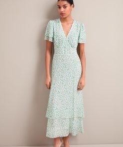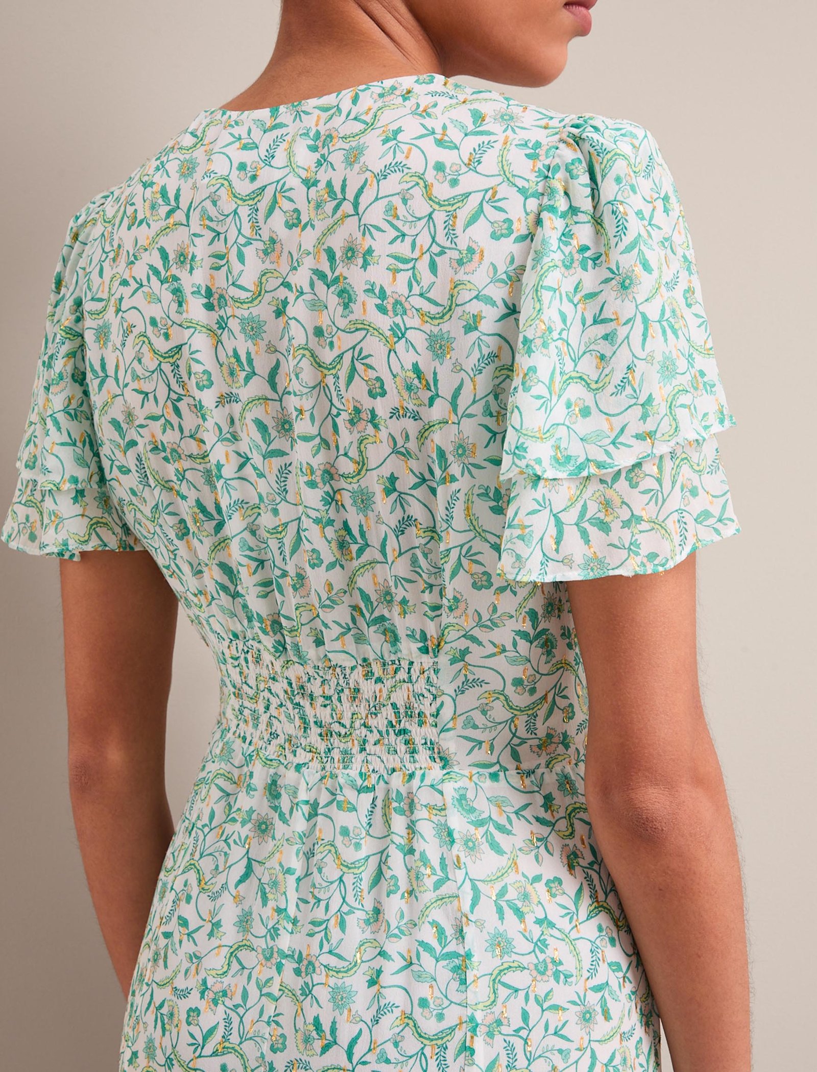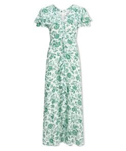 Lotta Gold Metallic Fil Coupé Maxi Dress – Green Yellow Trailing Feather Print