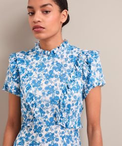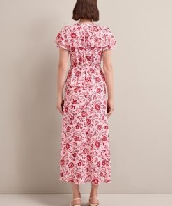 Vivienne Cotton Blend Maxi Dress – Pink Palm Floral Print